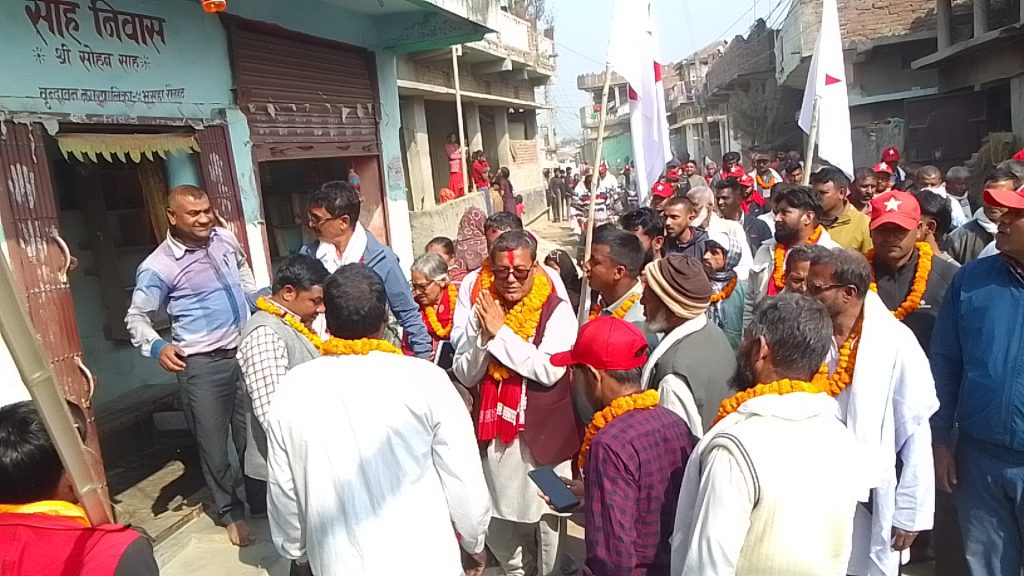 आज बृन्दावन नगरपालिका–८ र ९ अन्तर्गतका भुसहा, आकडपाथड तथा बहुअरी गाउँमा सम्पन्न घरदैलो कार्यक्रममा स्थानीयवासीको उल्लेखनीय सहभागिता देखिएको थियो। उम्मेदवार भट्टराई जब टोल–टोल र घर–घर पुग्नुभयो, मतदाताहरूले टीका, माला र दोसाला ओढाएर हार्दिक स्वागत गरेका दृश्यहरूले चुनावी माहोललाई झनै जीवन्त बनाएको प्रत्यक्षदर्शीहरूले बताएका छन्।