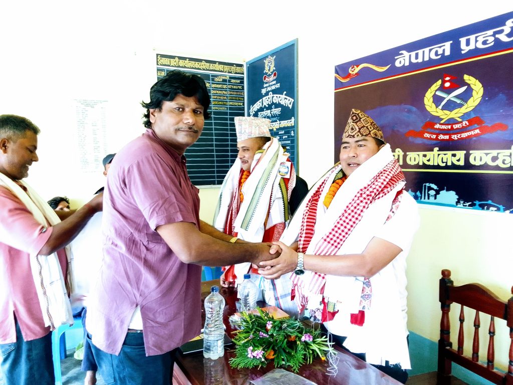 सोही अवसरमा ईलाका प्रहरी कार्यालय कटहरियाको नयाँ प्रमुखका रूपमा जिम्मेवारी सम्हाल्न आउनुभएका प्रहरी नायब निरीक्षक मोहन सिंह आलेलाई हार्दिक स्वागत गरिएको छ। सहभागीहरूले उहाँको नेतृत्वमा कार्यालयले थप प्रभावकारी, सेवामुखी र जनमैत्री काम गर्ने अपेक्षा व्यक्त गरेका छन्।