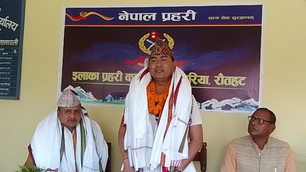 रौतहट जिल्लाको कटहरियास्थित ईलाका प्रहरी कार्यालय परिसरमा एक विशेष कार्यक्रमका बीच प्रहरी नायब निरीक्षक धर्मेन्द्र पौडेलको सरुवा भई जिल्ला प्रहरी कार्यालय गौरमा कार्यभार सम्हाल्न जानुहुँदा बधाई तथा शुभकामना आदान–प्रदान कार्यक्रम सम्पन्न भएको छ।